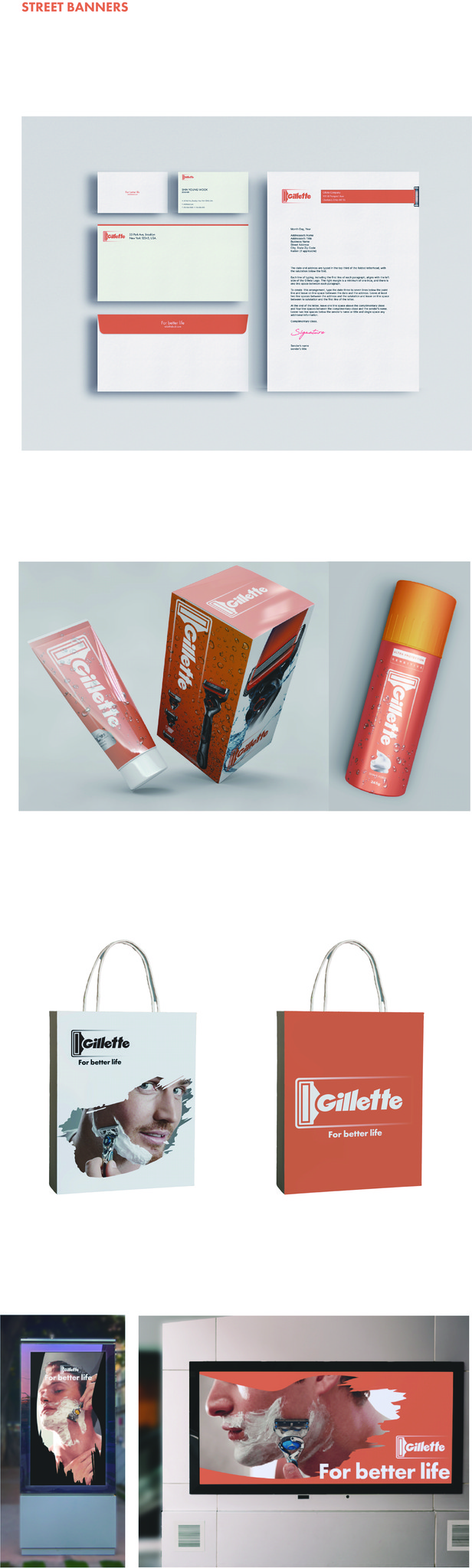 This case study concentrates on developing a distinctive visual identity that highlights the razor, one of Gillette's flagship products. The supplementary secondary branding elements are seamlessly integrated into the existing branding system through a variety of carefully designed applications, aiming to strengthen brand recognition and visual consistency.