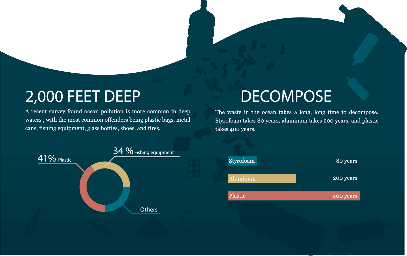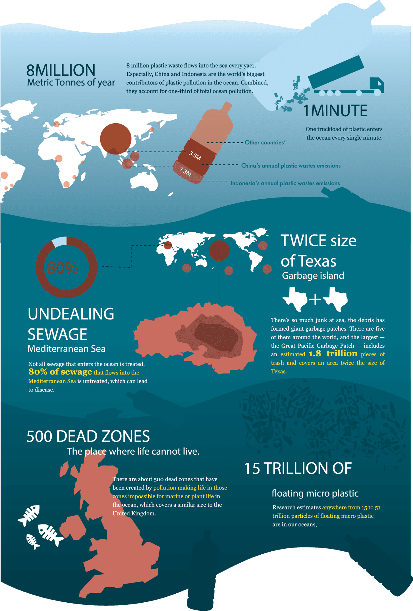 The purpose of this project was to create infographic designs to raise awareness about plastic pollution in the oceans.