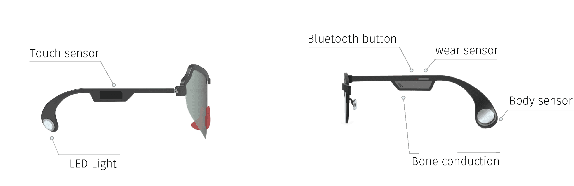 Traditional earphones and headsets pose safety concerns by blocking the ear canal during exercise, which can impair awareness and increase accident risk. BC GLASSES addresses this issue with two main features: