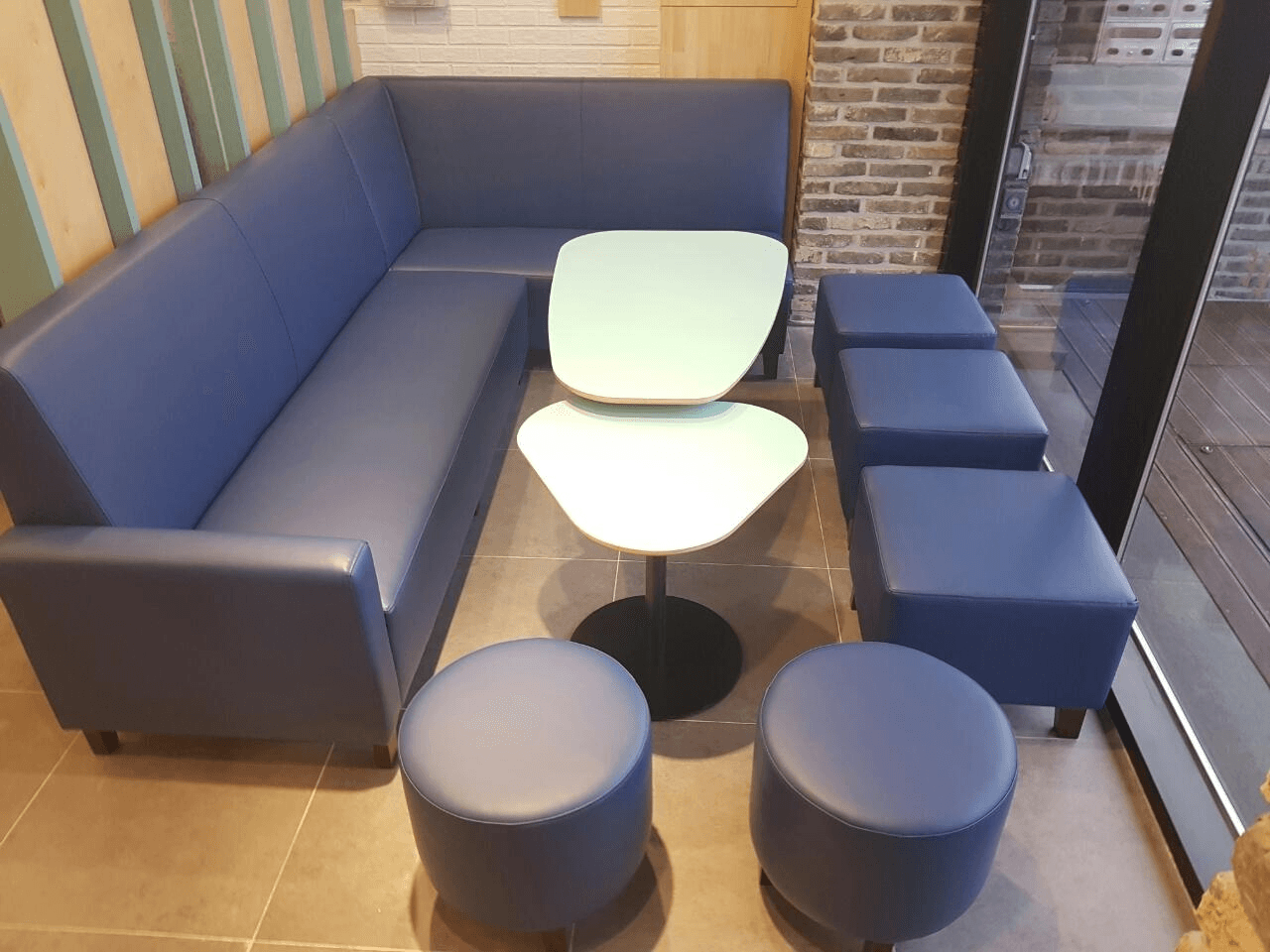 After an on-site visit to measure the cafeteria space, the color, texture, and design were determined through a 1:1 consultation with the client. The built-in couches were then manufactured and delivered through outsourcing.