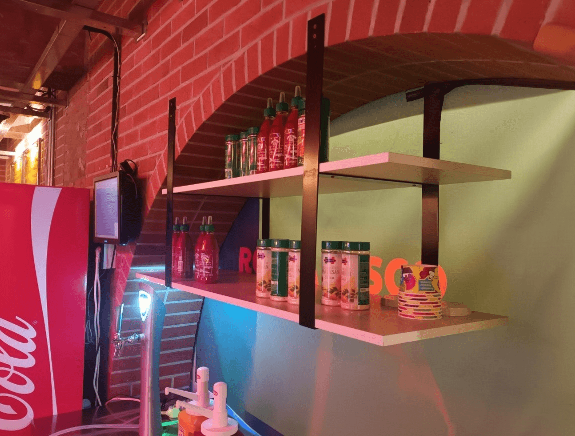 Wall Shelves at Pizza Restaurant