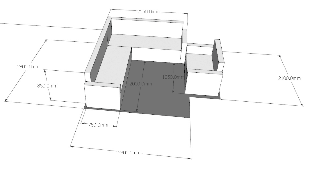 Design for modular couches and tables to be installed in a cafe. Each couch can be separated and combined, allowing for flexible use of the space.
